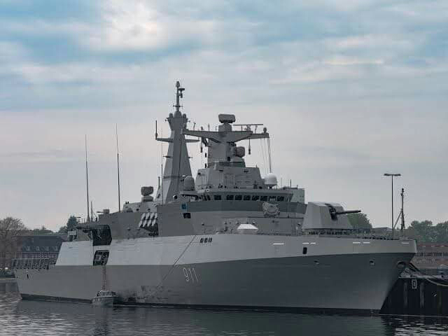 وتعد الفرقاطة المذكورة ألمانية متعددة المهام متوسطة الإزاحة، وكثيفة التسليح، تبلغ إزاحتها القصوى 3700 طن، والسرعة القصوى باستخدام كامل منظومة الدفع 54 كيلومترا في الساعة، والمدى 13.3 ألف كيلومتر على سرعة 29.6 كيلومتر/ساعة، والطاقم من 100:120، بمن فيهم طاقم المروحية العاملة على متنها، ويمكنها استيعاب 50 فردا من أفراد القوات الخاصة، كما تستطيع البقاء 28 يوما في البحر قبل العودة للتزود بالوقود والمؤن.